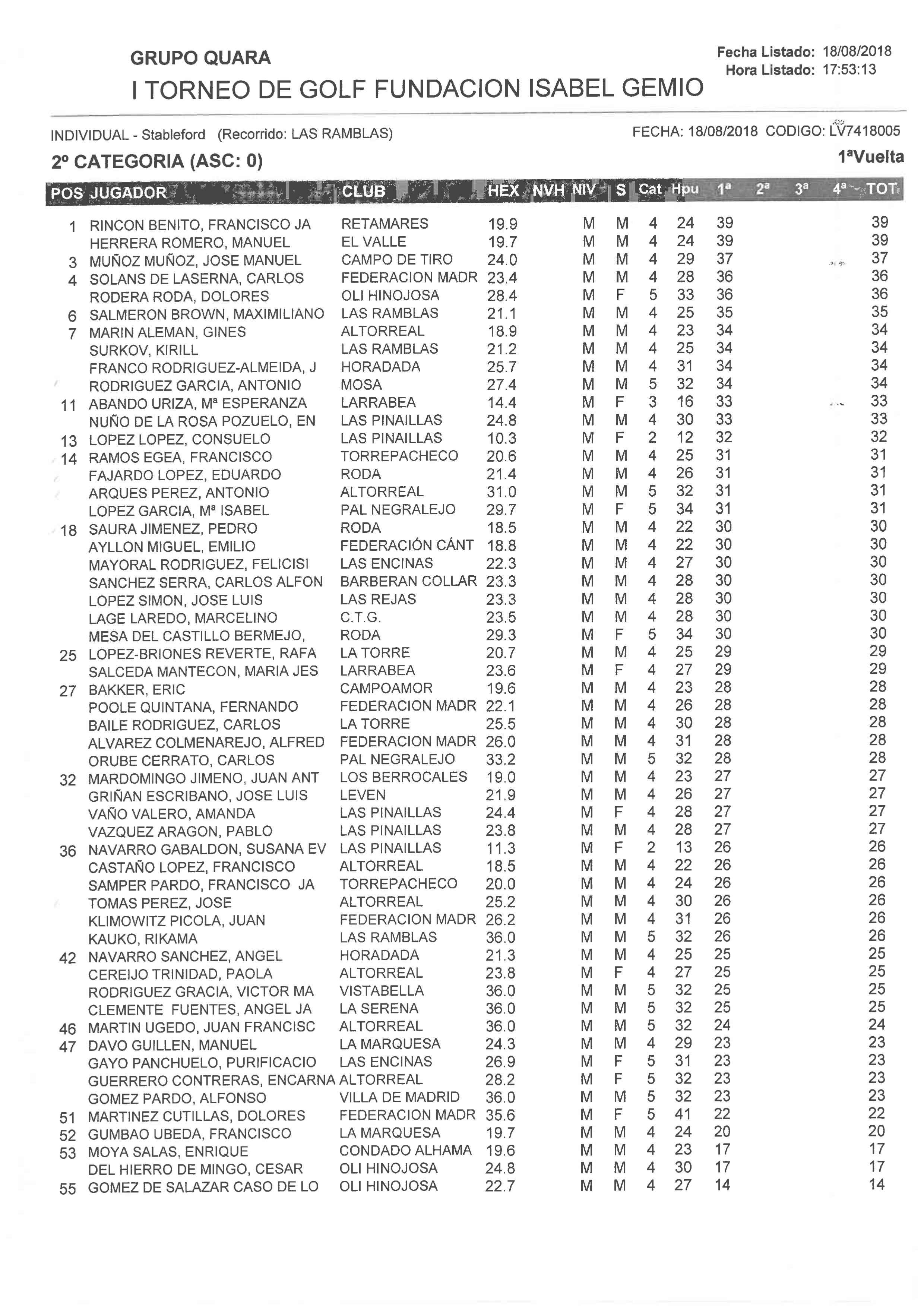 180818 RAM, Clasificación 2ª Categoría