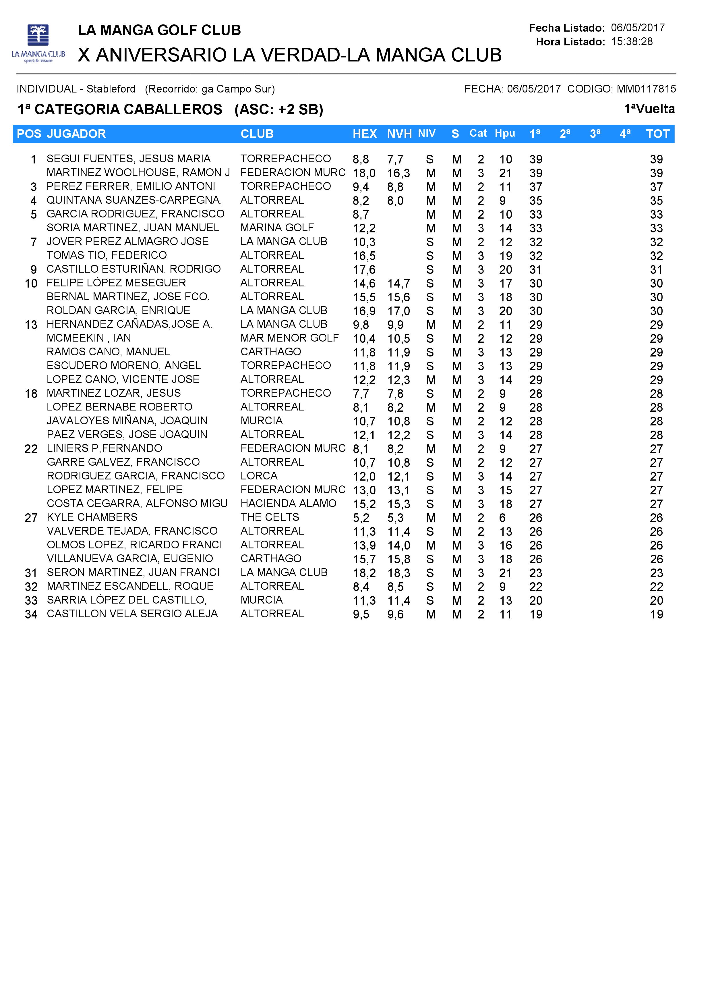 170506 LMS, Clasificación 1ª Categoría Caballeros