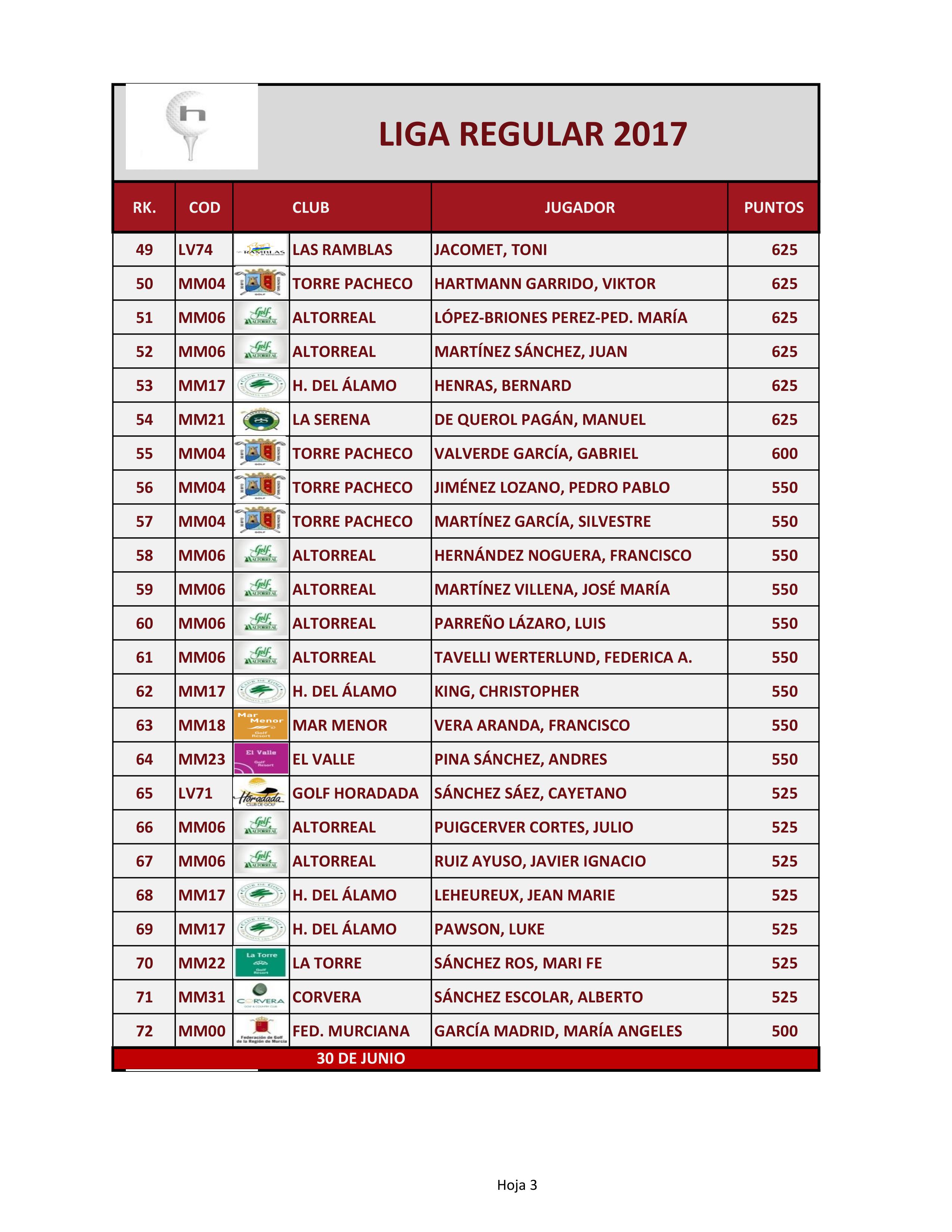 170630 Clasificación provisional 3/17