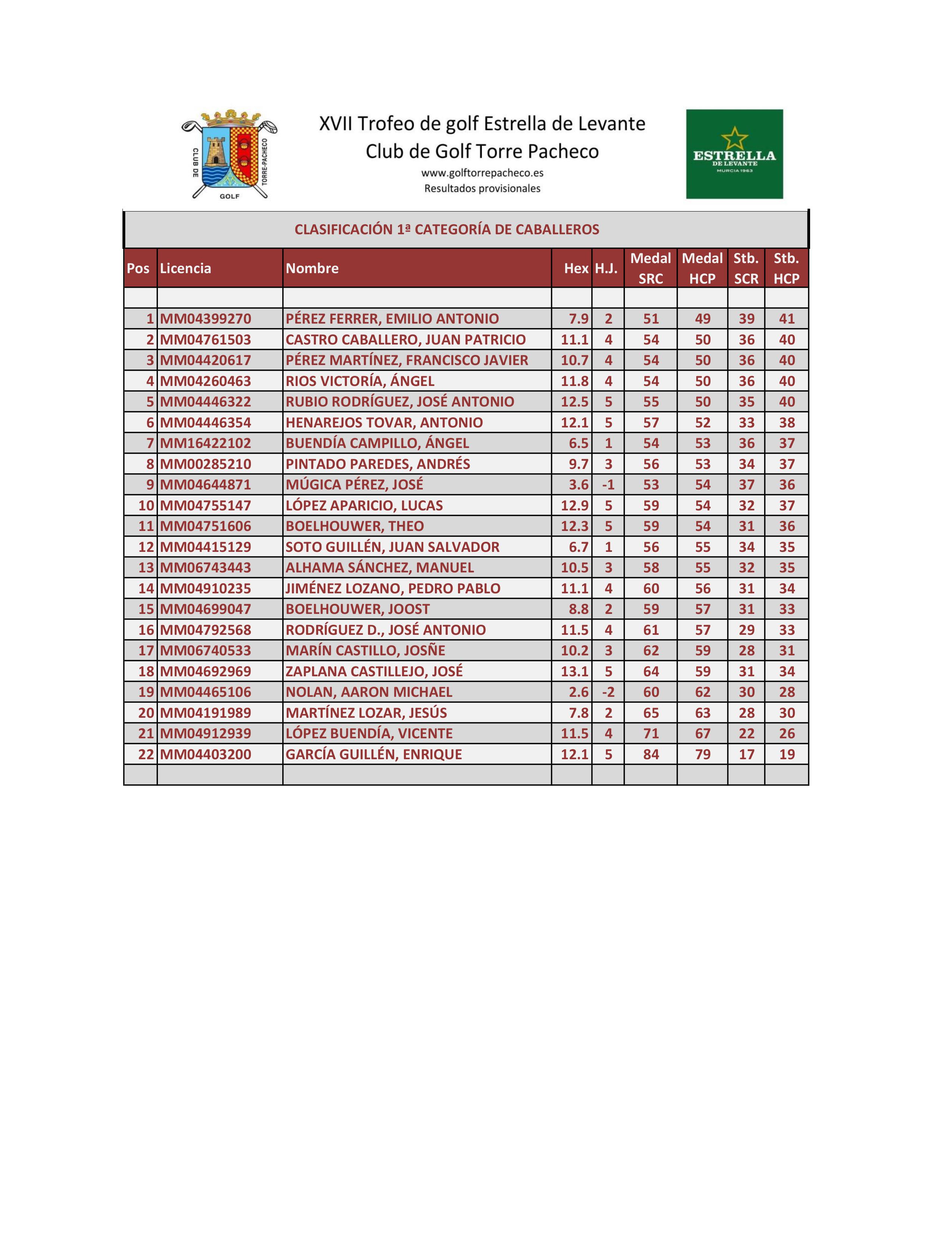 170708 TPA, Clasificación 1ª Categoría Caballeros