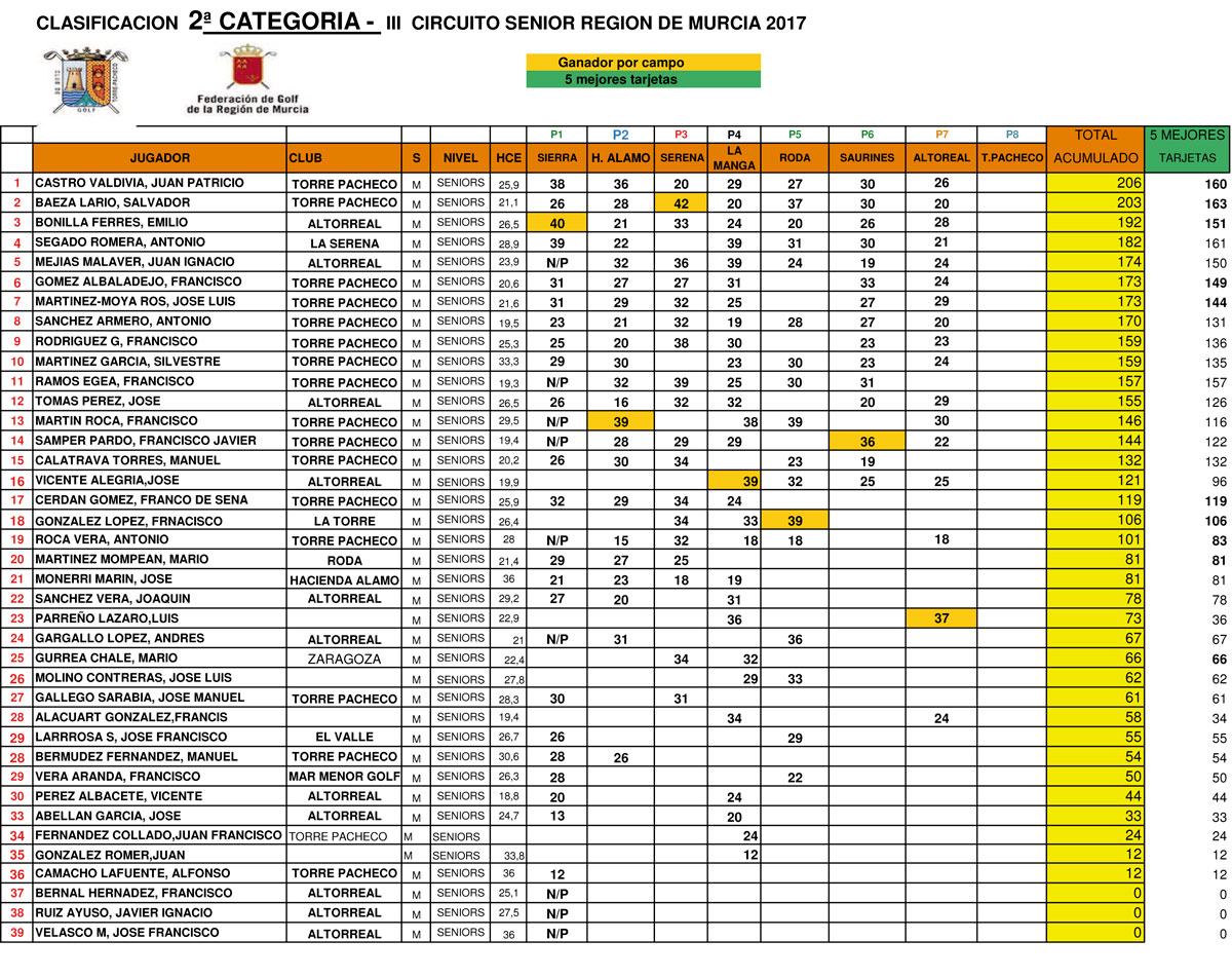 171120 ALT, Clasificación Acumulada 2ª Categoría Caballeros 171120 ALT, Clasificación Acumulada 2ª Categoría Caballeros
