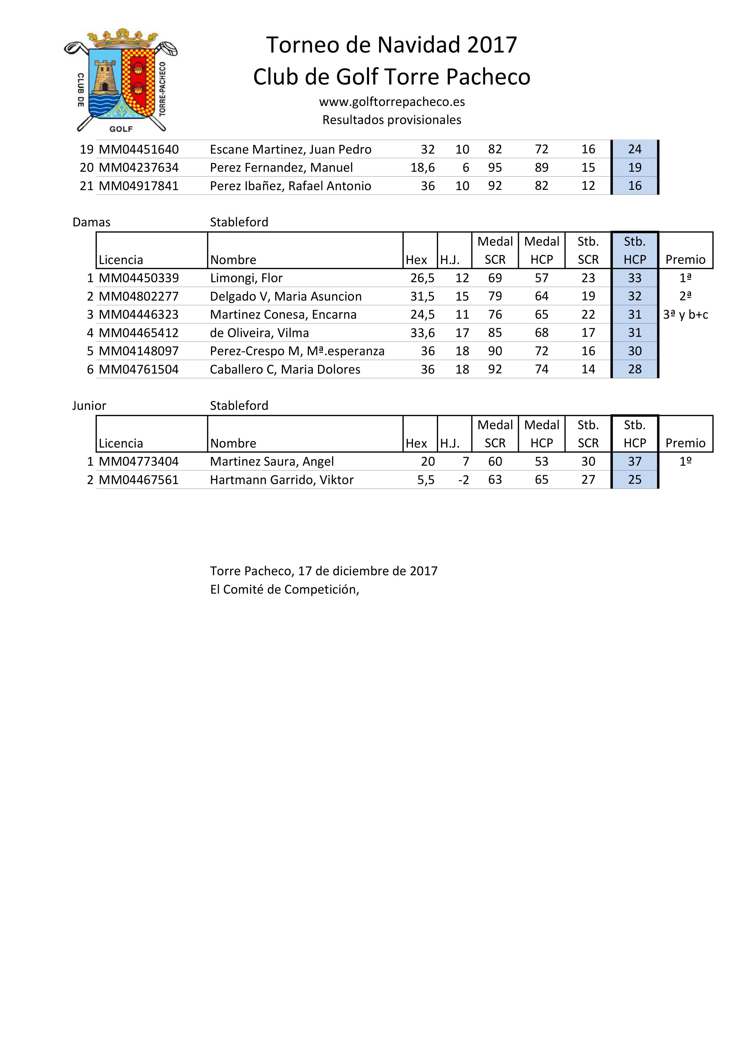 171217 TPA, Clasificación del torneo (2)