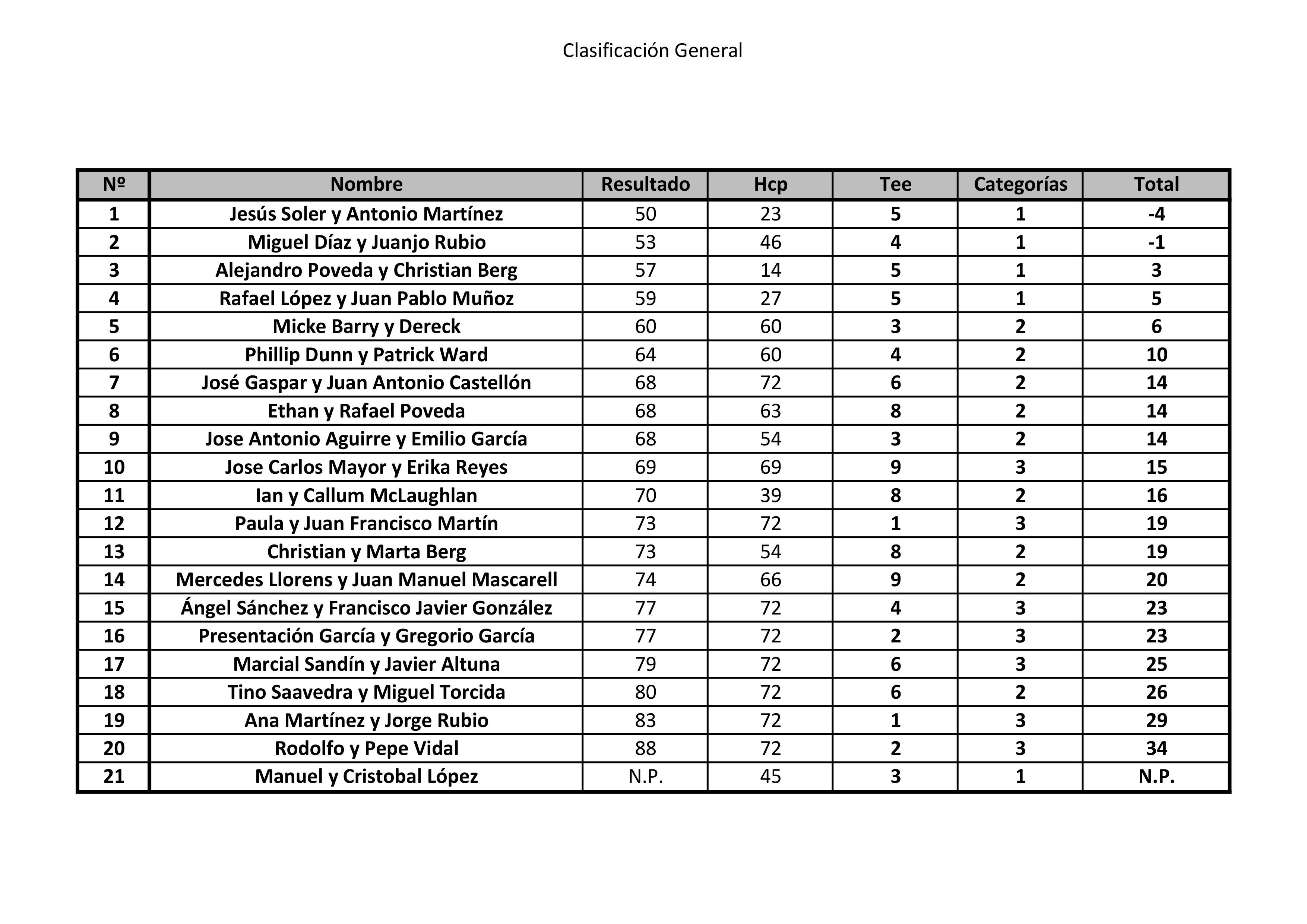 180107 MTP, Clasificación general del torneo