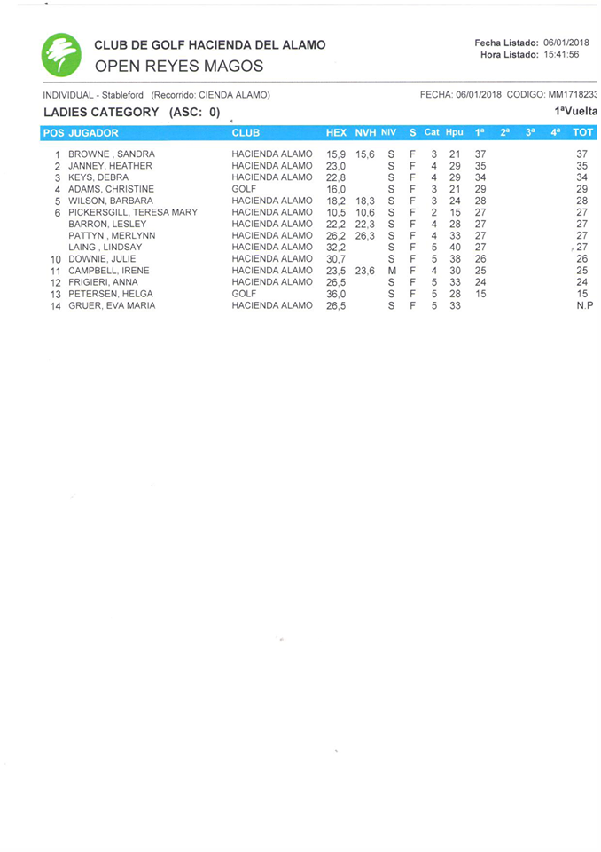 180106 HDA, Clasificación Categoría Damas