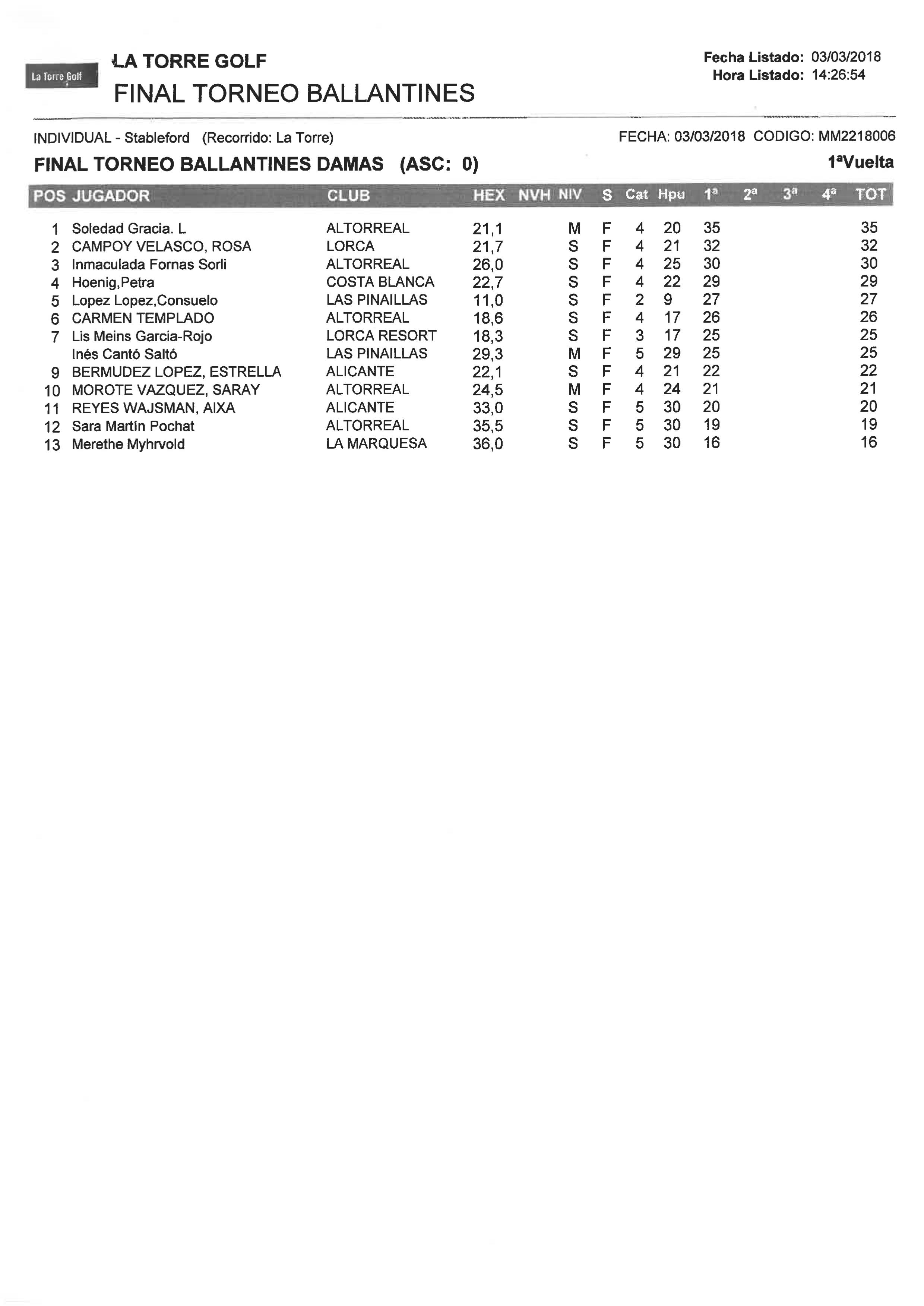 180303 LTO, Clasificación Categoría Damas