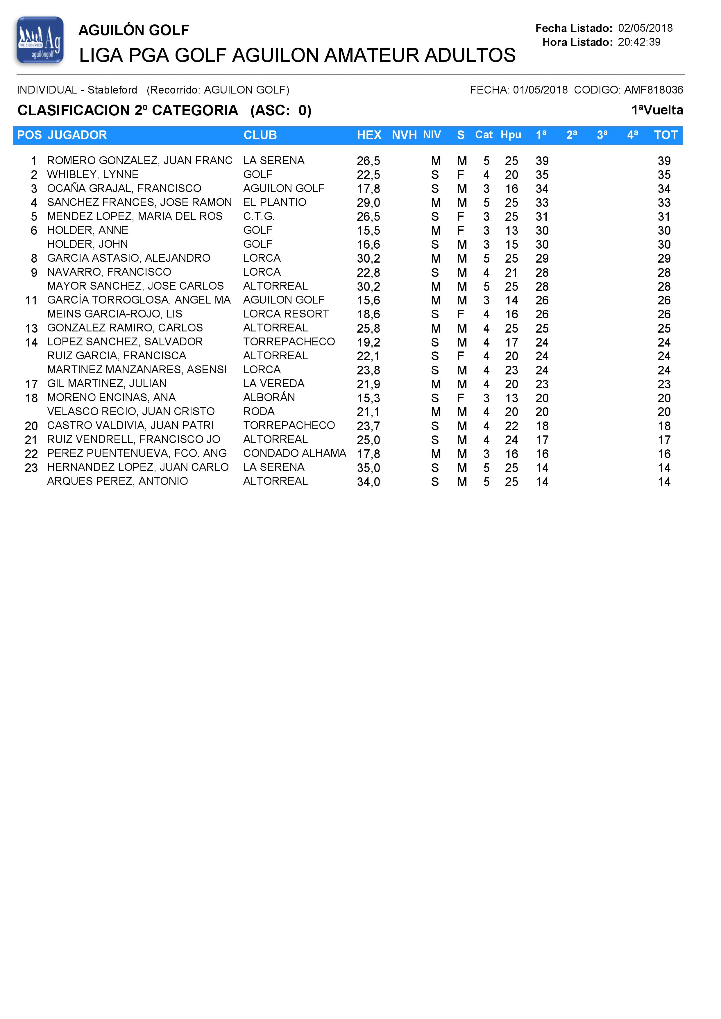 180501 AGU, Clasificación 2ª Categoría Caballeros