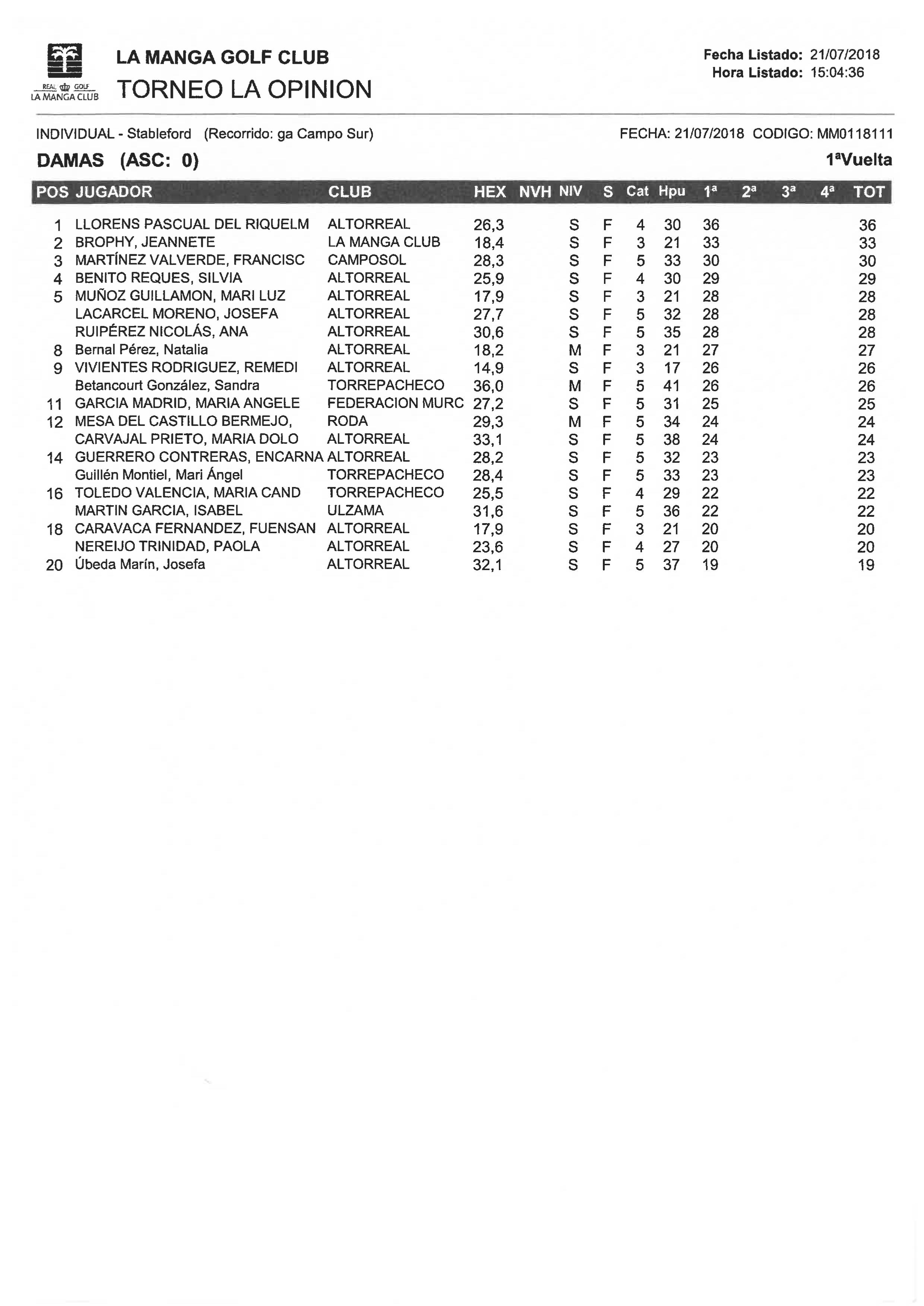 180721 LMS, Clasificación Categoría Damas