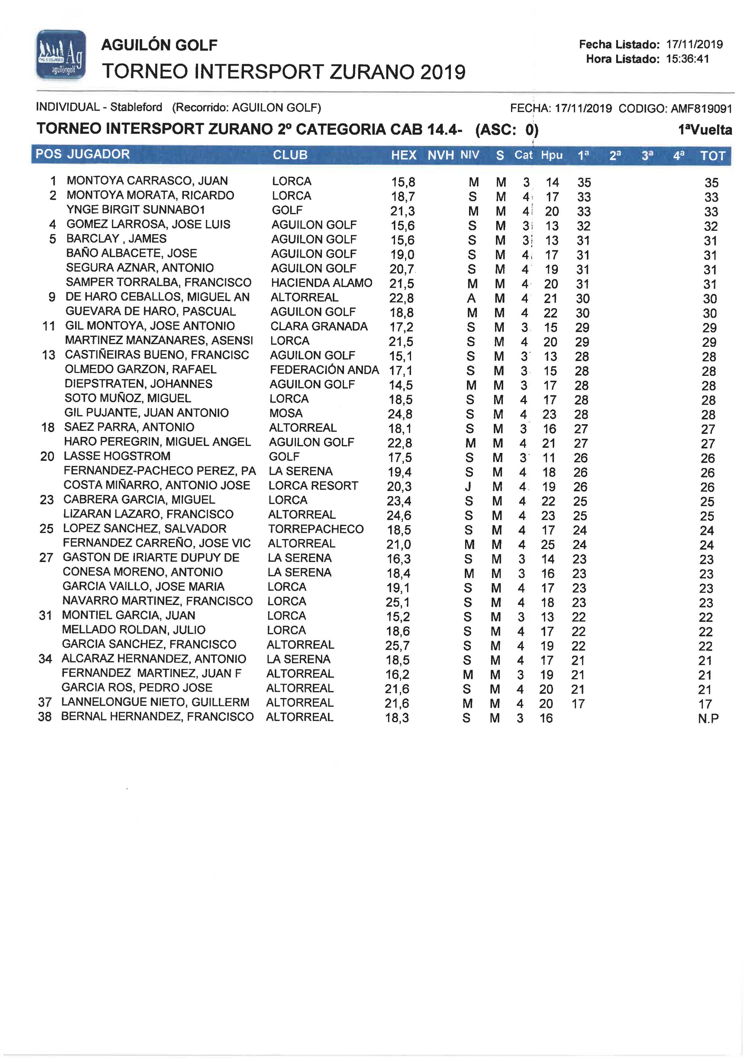 191117 AGU, Clasificación 2ª Categoría Caballeros