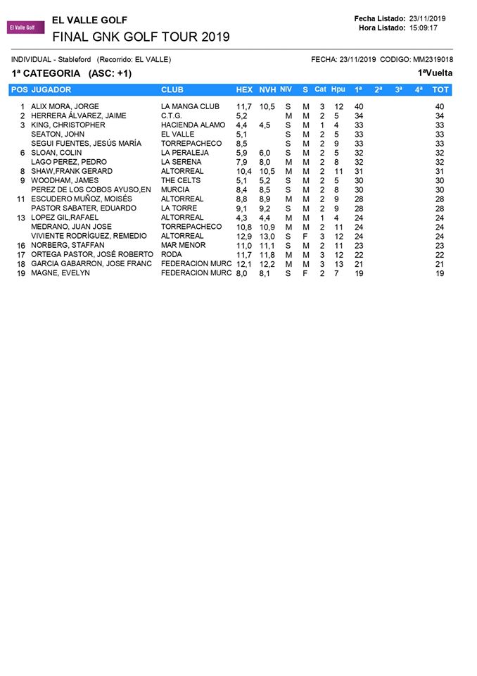 191123 Val, Clasificación 1ª Categoría
