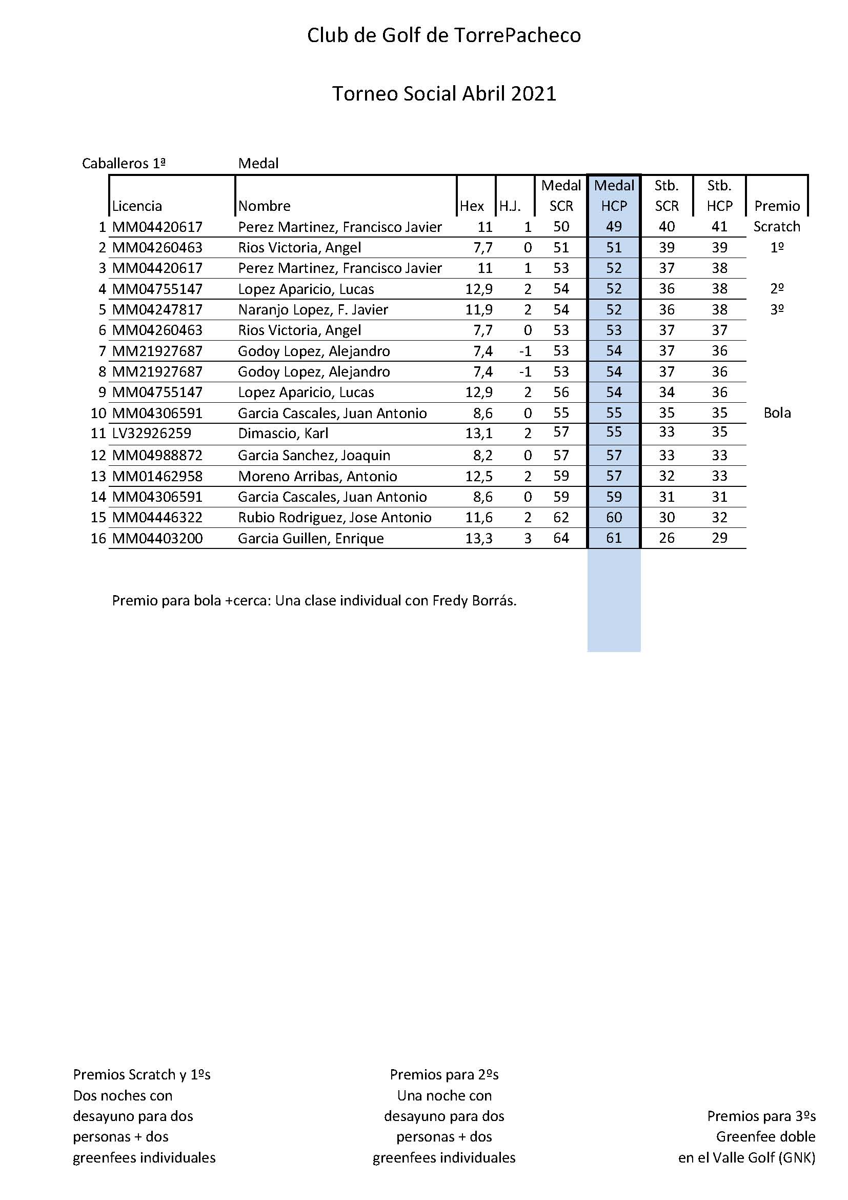 210509 TPG, Clasificación 1ª Categoría Caballeros